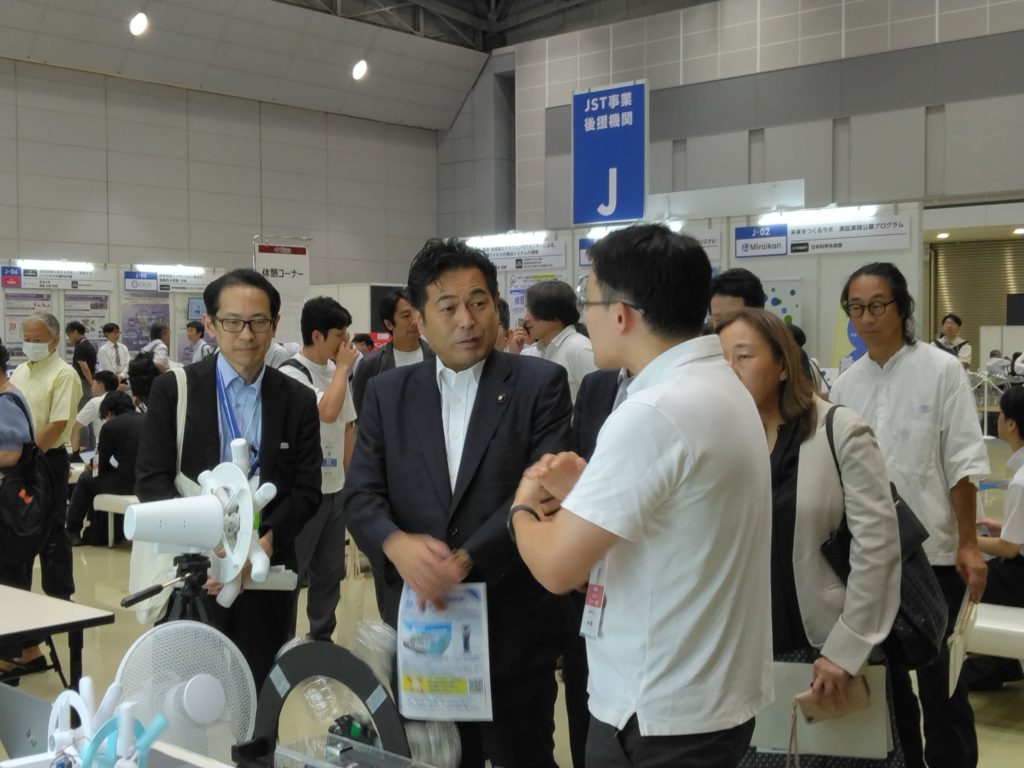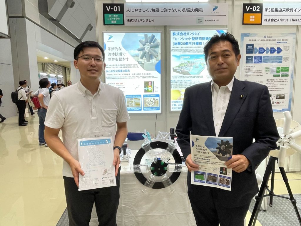 大学見本市 イノベーション・ジャパン2025に出展!会場のビッグサイトは各大学様々な研究成果の発表が一堂に会し熱気に溢れた二日間となりました。パンタレイブースには多くの企業様・自治体様にご来訪頂き大変盛況となりました。また文部科学副大臣 野中 厚様の表敬を頂き代表の佐藤がパンタレイの持つ先進技術の説明をさせて頂きました。同会場には弊社CTO高橋 勉の長岡技術科学大学 流体工学研究室ブースが出展。ムーンショットを獲得した基本概念やこれまでの研究成果の展示を行い好評を博しました。両ブース共に高橋研究室の学生が活躍。会場設営や来場者様への説明に奔走しました。こうした実社会での経験は学生にとって貴重な財産となっています。